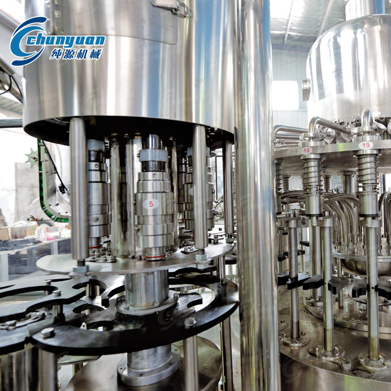 純源機械廠家生產(chǎn)制造的三合一涼茶飲料灌裝設備采用卡瓶頸傳動技術,實現(xiàn)全自動沖瓶、灌裝、封蓋等工序,自動化程度高;茶飲料灌裝機配有完善的溫度控制系統(tǒng)和回流系統(tǒng),設有完善的自動清洗系統(tǒng)及控制程序,整個涼茶飲料機械與液體接觸的零件全部使用優(yōu)質不銹鋼材料及食品級橡膠。